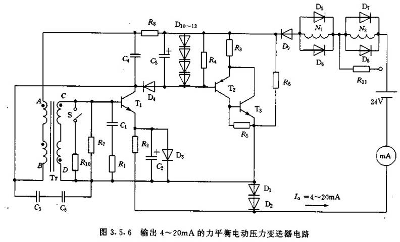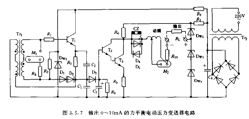3、輸出0-10mA的力平衡電動壓力變送器電路